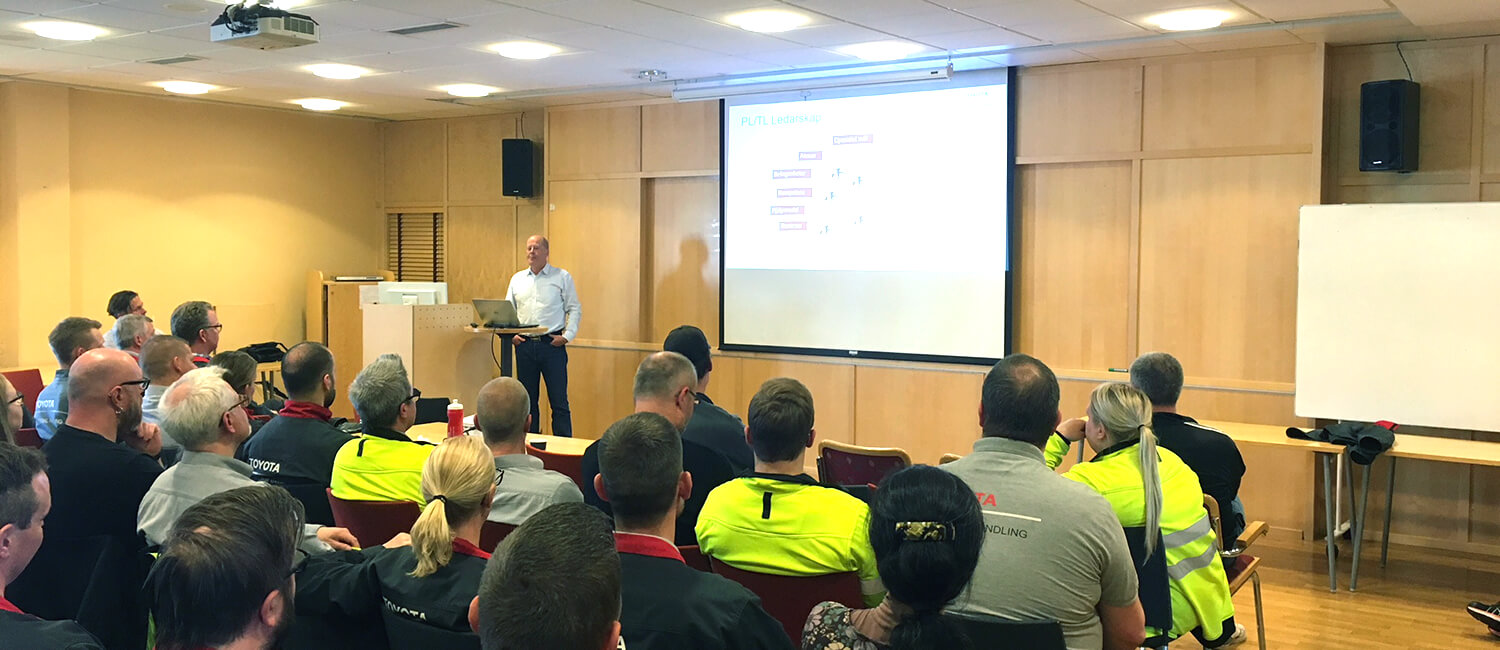 Fabriksledningen på Toyota Material Handling har genomfört en ledar- och ledningsgruppsträning på produktionsledningsnivå. Syftet med träningen har varit att samträna och utveckla respektive ledare och produktionsledningsgrupp i operativ ledning.
